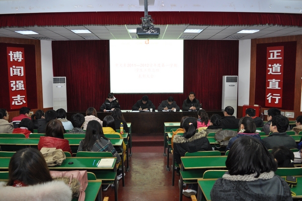我系副主任刘勇分析了我系目前员工中存在的学习氛围不浓厚、学习主动意识不强等一系列学风问题,他指出,老员工应该规划好自己的人生,要坚持不懈,排除干扰,潜心学习。并且要求在座师生以本次表彰大会为契机,强化班级管理,以良好的班风促进良好学风建设;要继续加强“三早一晚”工作的督查、引导力度,以“高在素养,强在技能,赢在特色”的为素质培养目标,打造中文系“和谐,儒雅,自强,卓越”的文化氛围。