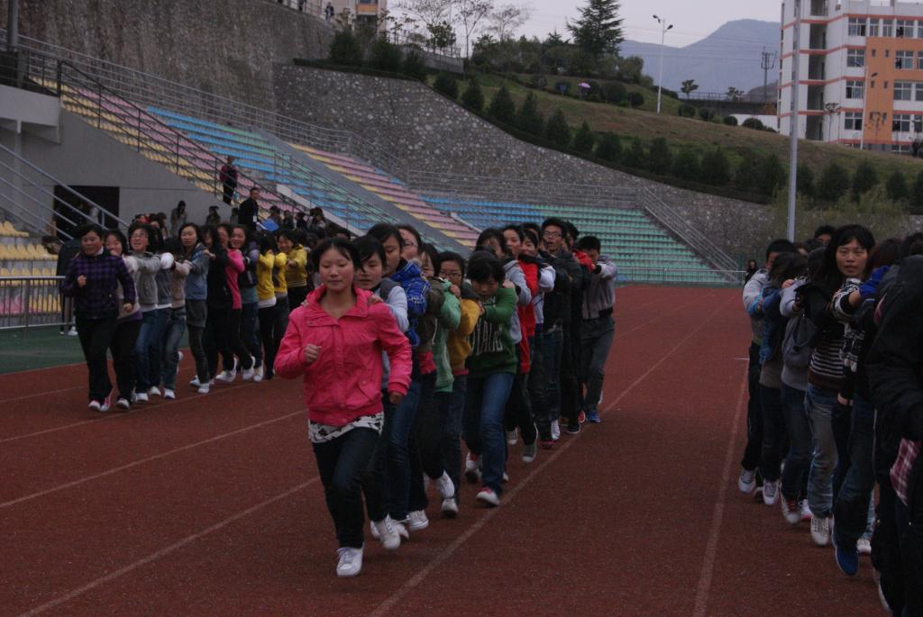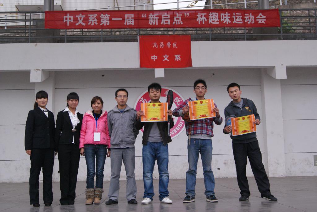赛场上,秋风瑟瑟,但运动员们的运动热情,拉拉队员热烈的欢呼声丝毫未减,此起彼伏的呐喊声、加油声响彻在运动场的上空。经过激烈、紧张的角逐,11级文秘教育班、11级汉语言文学2班、11级语文教育2班分别获得“袋鼠跳”项目一、二、三等奖;11级汉语言文学2班、11级文秘班、11级语文教育3班分别夺得“百米成语接龙”项目一、二、三等奖;11级语文教育1班、11级汉语言文学2班、11级语教4班分别获得“腿绑腿 心连心”项目一、二、三等奖;11级语教2班、11级语教4班、11级文秘教育班分别赢得“时代列车”项目一、二、三等奖。李斌、黄璜、刘婷老师、中文系员工分会主席李军等分别为获得一、二、三等奖的班级颁发了奖状和奖品。院团委副书记蒋正治为荣获“团体优秀奖”的11级汉语言文学2班颁奖。