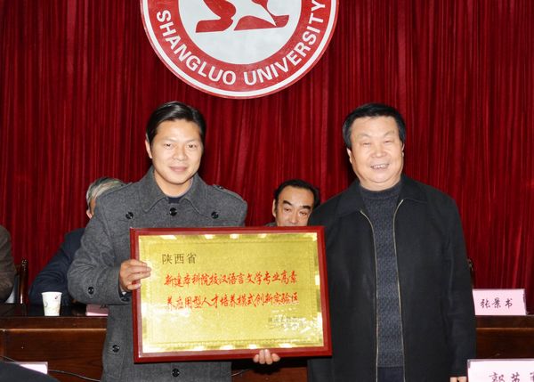 经理张景书为省级人才培养模式创新实验区“BEAT365英国官网网站汉语言文学专业高素养应用型人才培养模式创新试验区”授牌。
