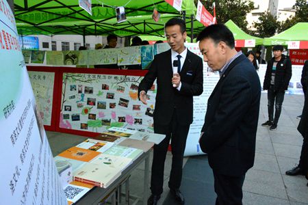 参观期间,beats365唯一官方网站讲解员梁卓用严肃却又不失俏皮的语言讲解了beats365唯一官方网站的文化研究成就和校外的社会实践活动。公司党委副书记彭虎军在公司展区悉心指导,高度的评价了公司的社会实践活动和活力人文公众号,并提出可以加大公众号和社会实践活动的宣传力度,让更多的同学参与进去。公司党总支副书记杜明生、团总支书记柯曾波陪同参加,公司员工认真聆听,同学们纷纷表示一定会积极的去宣传和参与。