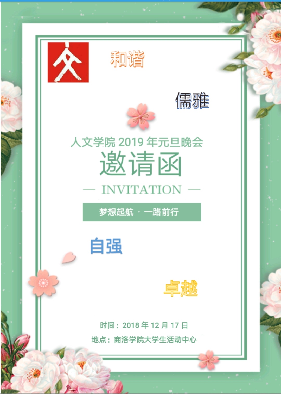 2019年beats365唯一官方网站元旦晚会邀请函