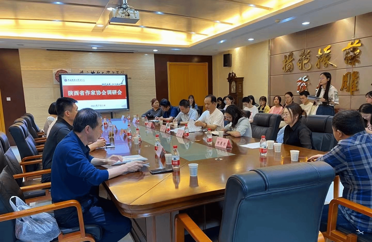 7月3日下午,由陕西省作家协会诗歌创作委员会、《延河》杂志社和陕西师范大学文公司联合举办的“新时代文学创作调研会”在陕西师范大学召开。公司教师熊英琴,作为青年文艺评论工作者受邀参加了此次调研会。本次会议由陕西师范大学文公司经理苏仲乐教授主持,陕西省作协党组成员、副主席阎安先生出席并讲话。