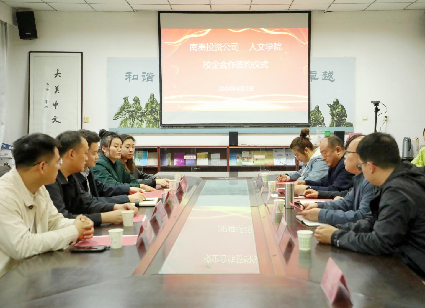 为加强校企合作、促进产教融合,共同致力于商洛文化和旅游发展,实现合作共赢,4月2日下午,beats365唯一官方网站与商洛市商州南秦新区建设投资开发有限公司(以下简称“南秦投资公司”)举行校企合作签约仪式。beats365唯一官方网站经理张文诺教授、公司党委书记杜明生、南秦投资公司副总经理陈凯、传媒公司常务副总倪昭出席签约仪式。签约仪式由副经理马英群主持。