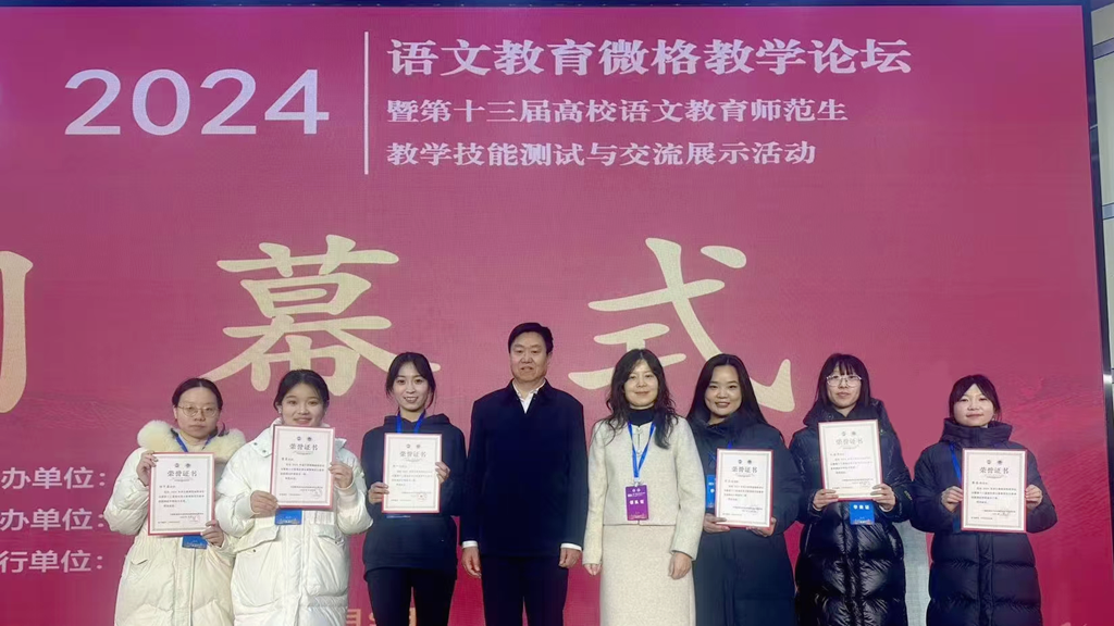 12月6日至9日,2024年语文教育微格教学论坛暨第十三届高校语文教育师范生教学技能测试与交流展示活动在北华大学成功举办。公司6名同学组队参加本次活动,教师席忍学、黎璐担任领队和指导教师。经过激烈角逐,参赛员工在技能测试中荣获一等奖1项、二等奖1项、三等奖2项、优秀奖2项。