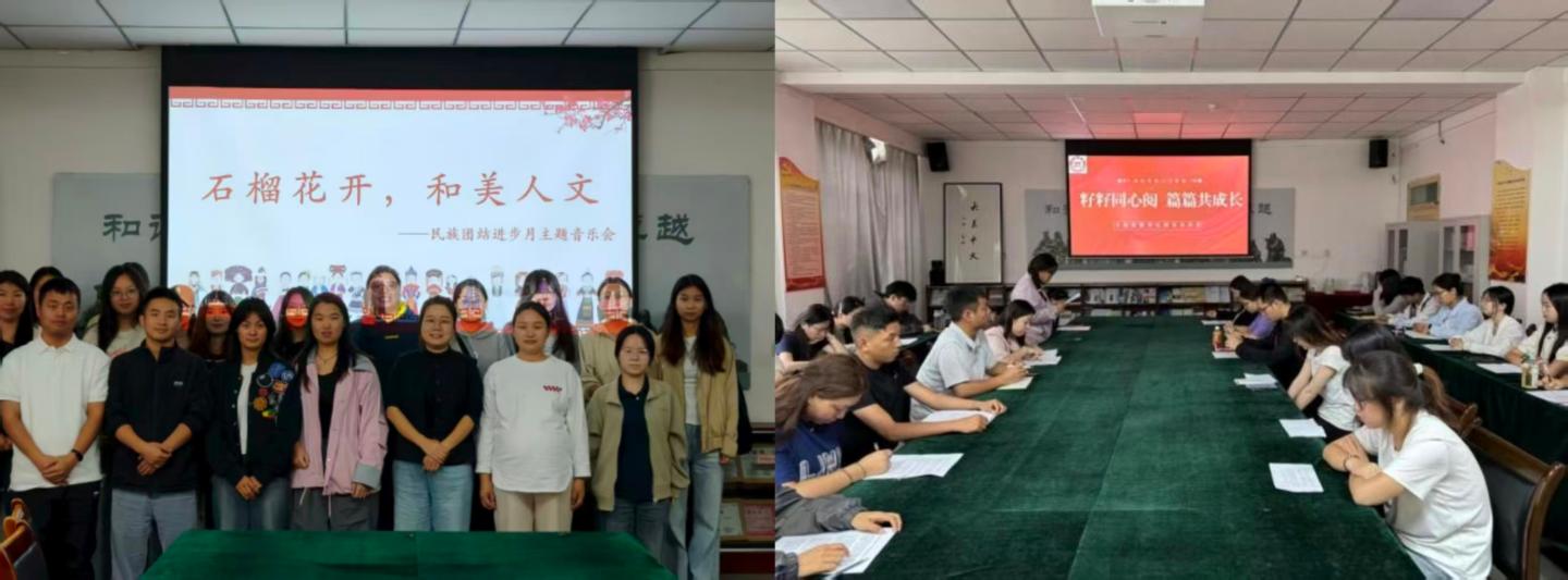 学工办主任李丹阳、2022级辅导员李姣组织开展“石榴花开,和美人文”主题音乐会,同学们在悠扬的音乐声中传播着中华优秀传统文化的魅力,展现着民族团结进步的精神面貌。