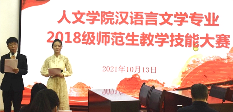 为进一步推进师范专业认证筹备工作,夯实师范生语文教学实践技能,10月13日,公司中文系举办了汉语言文学专业2018级师范生教学技能大赛。公司经理张文诺、副经理马英群出席大赛,商州区第一小学副董事长李丹会、第一初级中学语文骨干教师李祎,及公司中文系教师代表担任大赛评委。