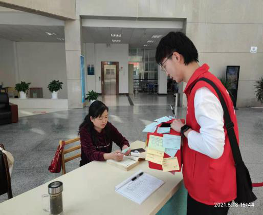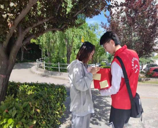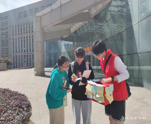 5月18日下午答题箱第一次启动,志愿者们带着移动党史答题箱,服务全校师生参与答题,答对问题后即可获得小小的纪念品。如若答错,志愿者们现场会进行详细的讲解。答题结束后,所有党史知识卡片会在展板上进行张贴,以供全校师生进行二次学习。整个活动过程中,全校同学们热情参与,对答如流。