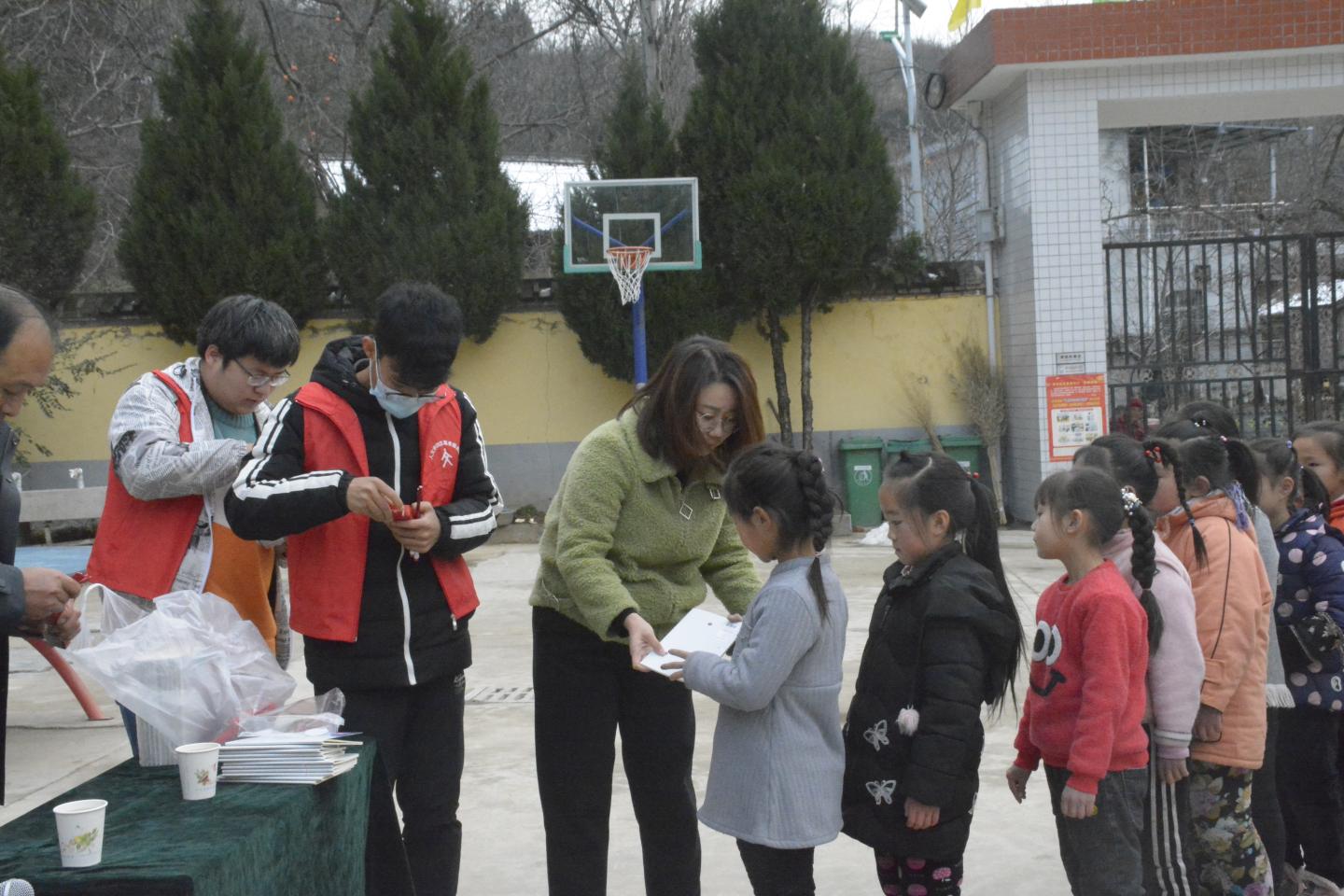 随后,团总支书记李丹阳老师及员工会主席樊钊邓金波为小朋友们分发礼物,在此之后全体师生志愿者合照留念。