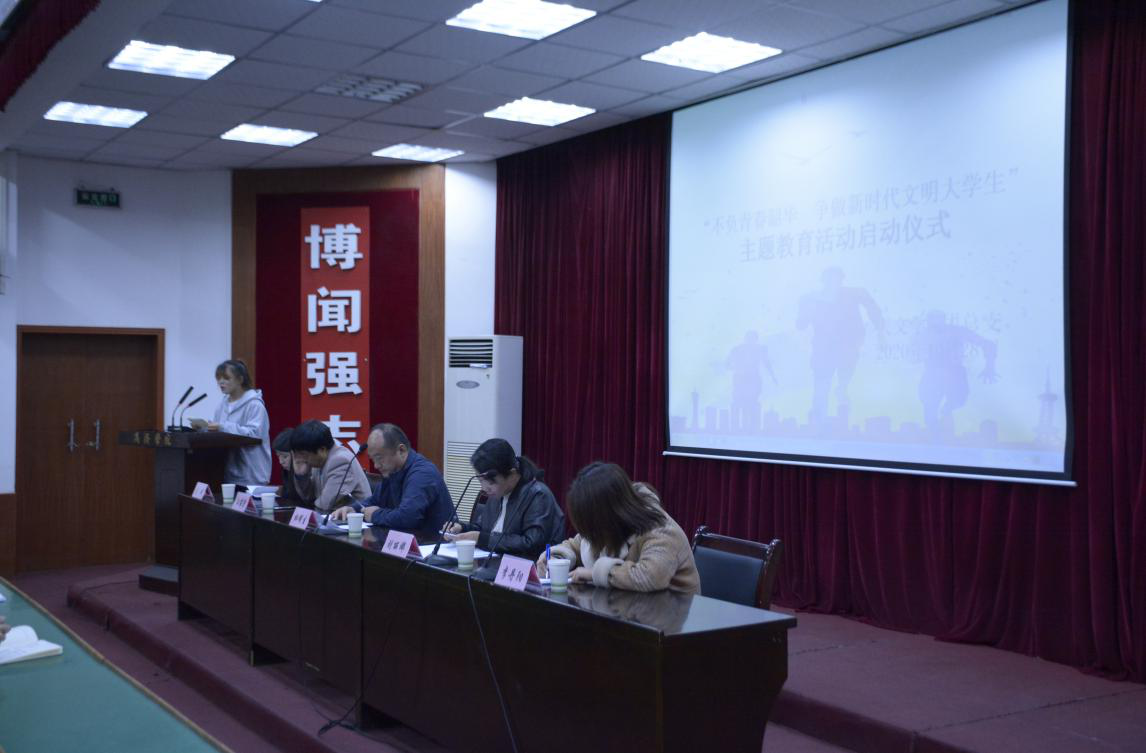10月28日晚,beats365唯一官方网站“不负青春韶华,争做新时代文明老员工”主题活动启动仪式在一号教学楼2号报告厅展开。公司党总支副书记杜明生、学工办主任刘丽娜、团总支书记李丹阳、全体辅导员、员工会全体成员参加本次启动仪式。