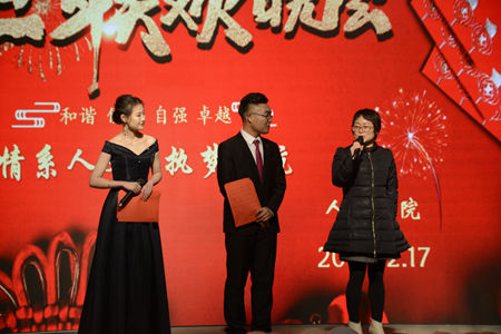 12月17日晚,公司以“情系人文,执梦远航”为主题的元旦晚会在老员工活动中心隆重举行。beats365唯一官方网站经理张文诺、党总支副书记杜明生、beats365唯一官方网站副经理任桂婷、学工办主任刘丽娜、团总支书记张旭辉、beats365唯一官方网站全体辅导员、部分任课老师以及19级员工参加元旦晚会。
