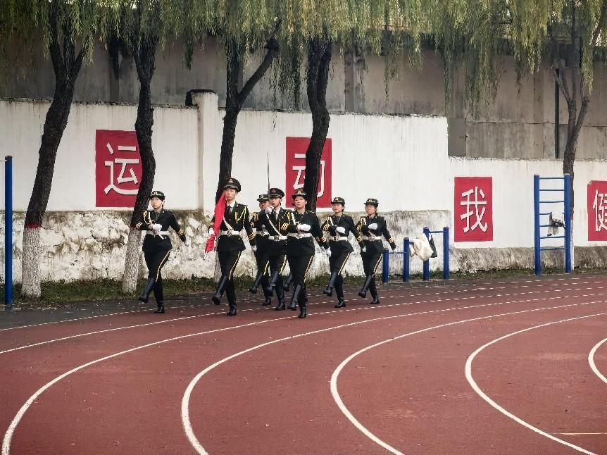 出旗环节,随着《中国人民解放军进行曲》奏响,国旗护卫队在全体学子专注的目光中迈着整齐有力的步伐进场。随后,在雄壮的国歌声中,鲜艳的五星红旗冉冉升起,迎风飘扬。全体师生肃立,目光坚定,满怀激情,庄严地唱起国歌,心中充满了对祖国的无限热爱和崇高敬意。