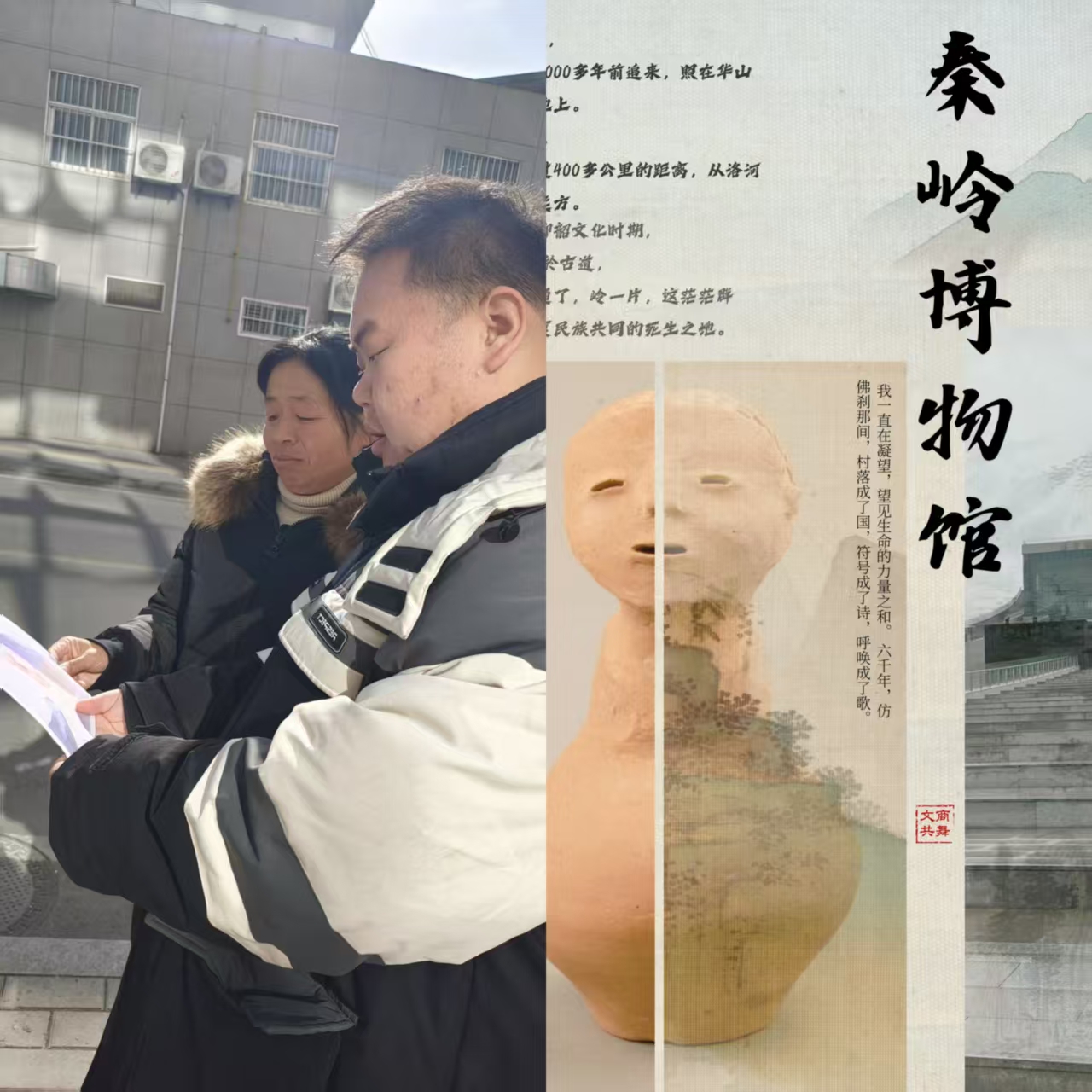 “巍巍秦岭九州昂,龙脉绵绵多赫煌”。秦岭最美是商洛,合和南北天下扬。 在寒假期间,适逢秦岭博物馆2025年新年开馆之际,beats365唯一官方网站领航青年宣讲团利用假期开展了宣传商洛秦岭博物馆实践活动。此次活动聚焦宣传红陶人头壶、商字瓦当等为代表的一系列珍贵的泥陶文物,结合商洛本地传统泥塑文化、“泥活儿”技艺,志愿者们走上街头、走进公司,通过志愿宣讲秦岭文物、制作文创产品、利用人工智能AI制作讲解视频等多种手段宣传秦岭博物馆,行文化创意,瞰陶韵无穷,对视六千年的凝望,回应六千年的等待,对话六千年的文明之源。以商洛泥塑文化传承创新为切入,探寻古老“泥活儿”背后的秦岭根脉、商州历史,让过去的文物,活起来、动起来、宣传出来,拥有未来。
