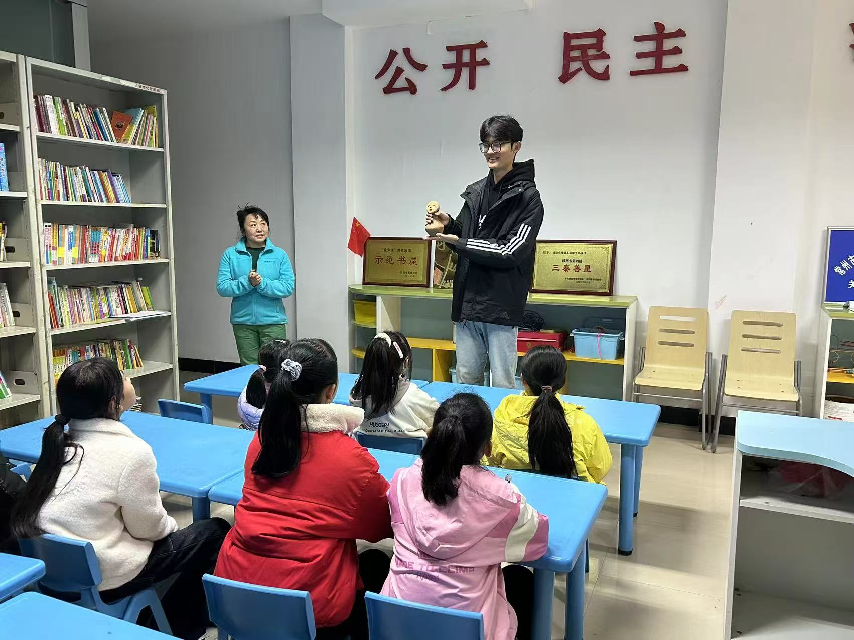 宣传活动利用假期持续进行,志愿者们回到自己中学教室里,向同学们宣传秦岭博物馆中的“泥活儿”,弘扬中华优秀传统文化和技艺,介绍文物背后所承担的历史,引导青少年探寻中华文明根脉。