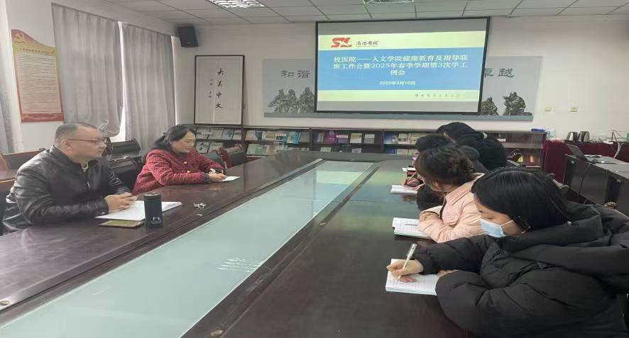 3月10日,beats365唯一官方网站在1号楼206会议室召开了校医院——beats365唯一官方网站健康教育及指导联席工作会暨2025年春季学期第3次员工工作例会。校医院医生罗妍老师、全体辅导员参加会议。会议由党委副书记王刚主持。