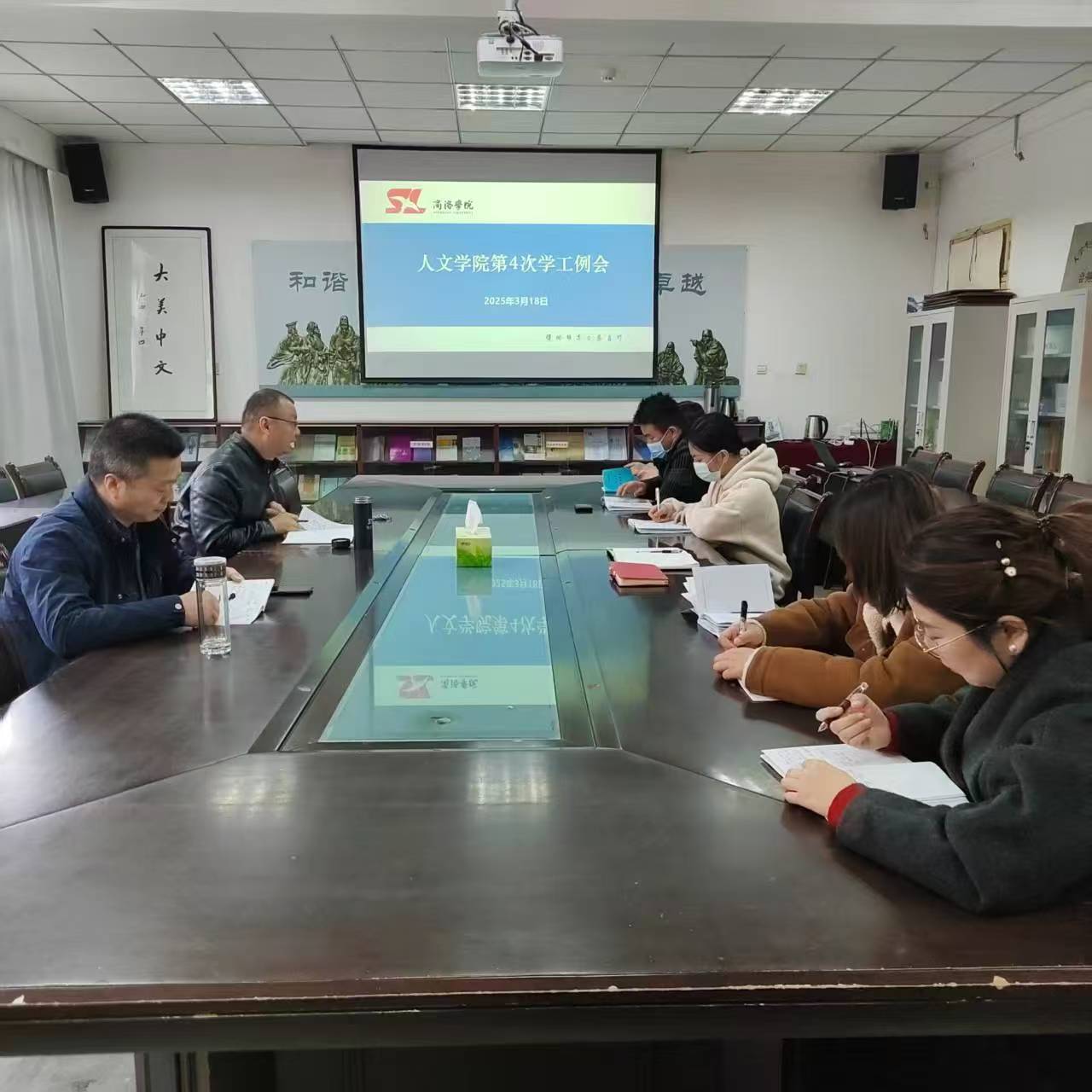 会议还对近期就业工作、员工日常管理、心理健康教育、党支部建设、汉语言文学师范类专业二级认证等具体工作进行了安排部署。
