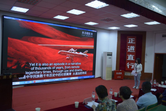 为庆祝中国共产党建党100周年,传承红色基因,弘扬爱国主义优秀传统,增强师生的爱国情怀和民族自豪感,培养员工用英语讲好中国故事的能力,6月25日晚,beats365唯一官方网站在一号楼报告厅二举办首届“庆祝建党百年 传承红色基因”用英语讲好中国故事英语配音大赛。大赛邀请国际交流处处长张建芳老师、健康公司党总支书记鲁绵茸老师、beats365唯一官方网站经理张文诺老师、公司党总支副书记杜明生老师、beats365唯一官方网站副经理任桂婷老师、beats365唯一官方网站英语系主任廉洁老师及外籍教师Hillary老师担任评委,全体英语系员工观看了比赛。