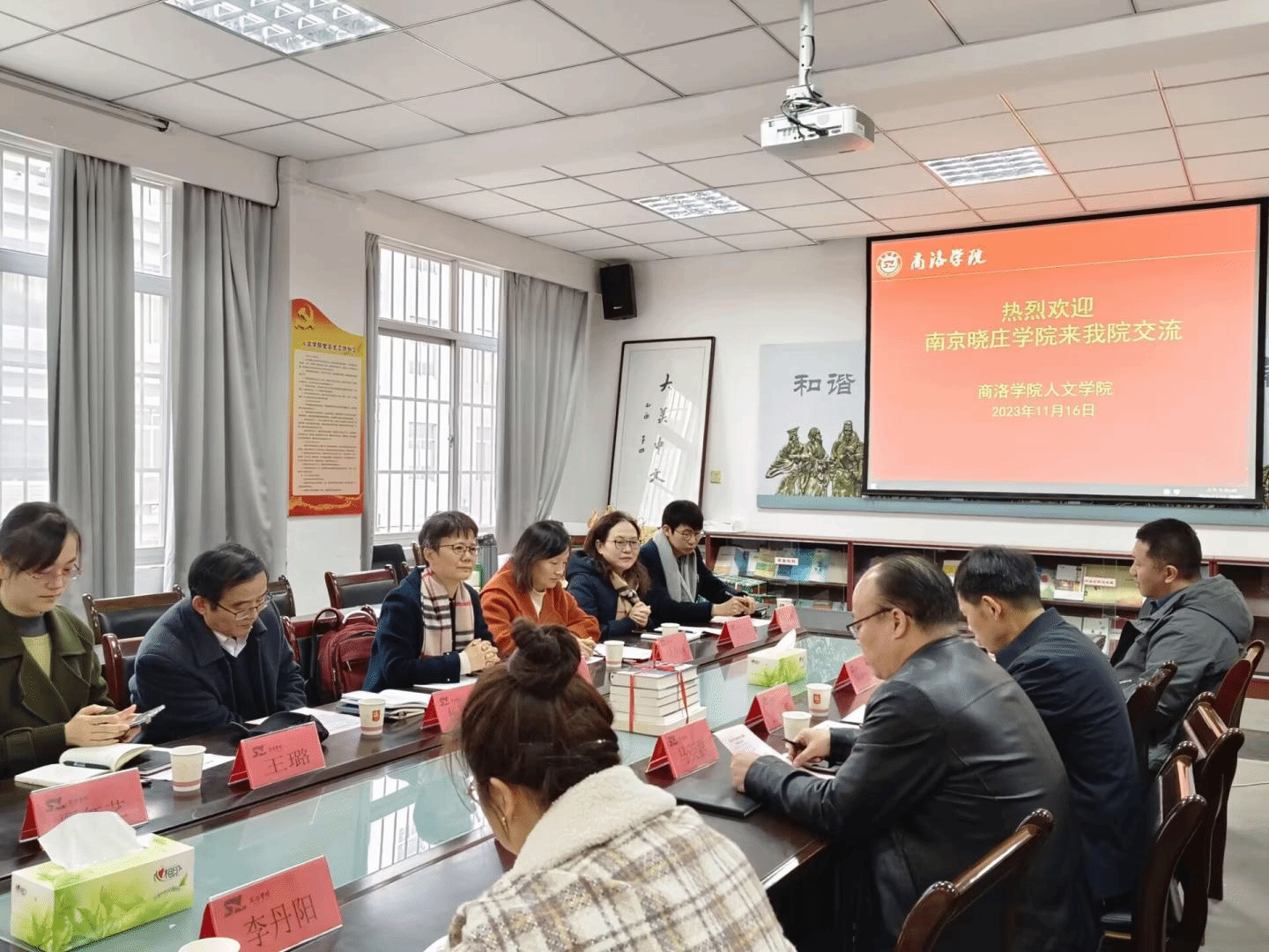 2023年11月16日,南京晓庄公司文公司经理张谦芬等一行八人来beats365唯一官方网站调研交流。调研座谈会在一号楼206室举行,晓庄公司文公司经理张谦芬、杨学民教授、党政办主任陆小丽、中文系主任王璐,公司经理张文诺、副经理马英群、中文系主任闵秋洁、学工办主任李丹阳等参加了座谈会,座谈会由副经理马英群主持。