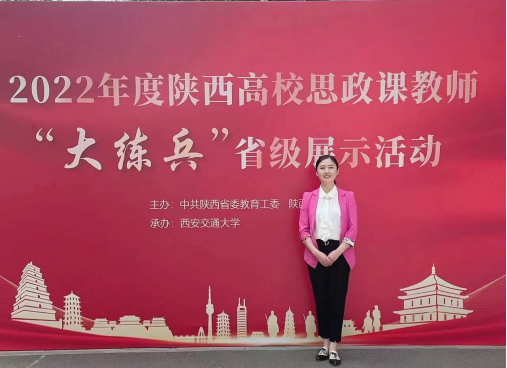4月12日,由中共陕西省委教育工委、陕西省教育厅组织的2022年度陕西高校思政课教师“大练兵”省级现场展示活动在西安交通大学举行。公司教师刘玉婷在展示活动中创佳绩,获得“课程思政教学标兵”称号。