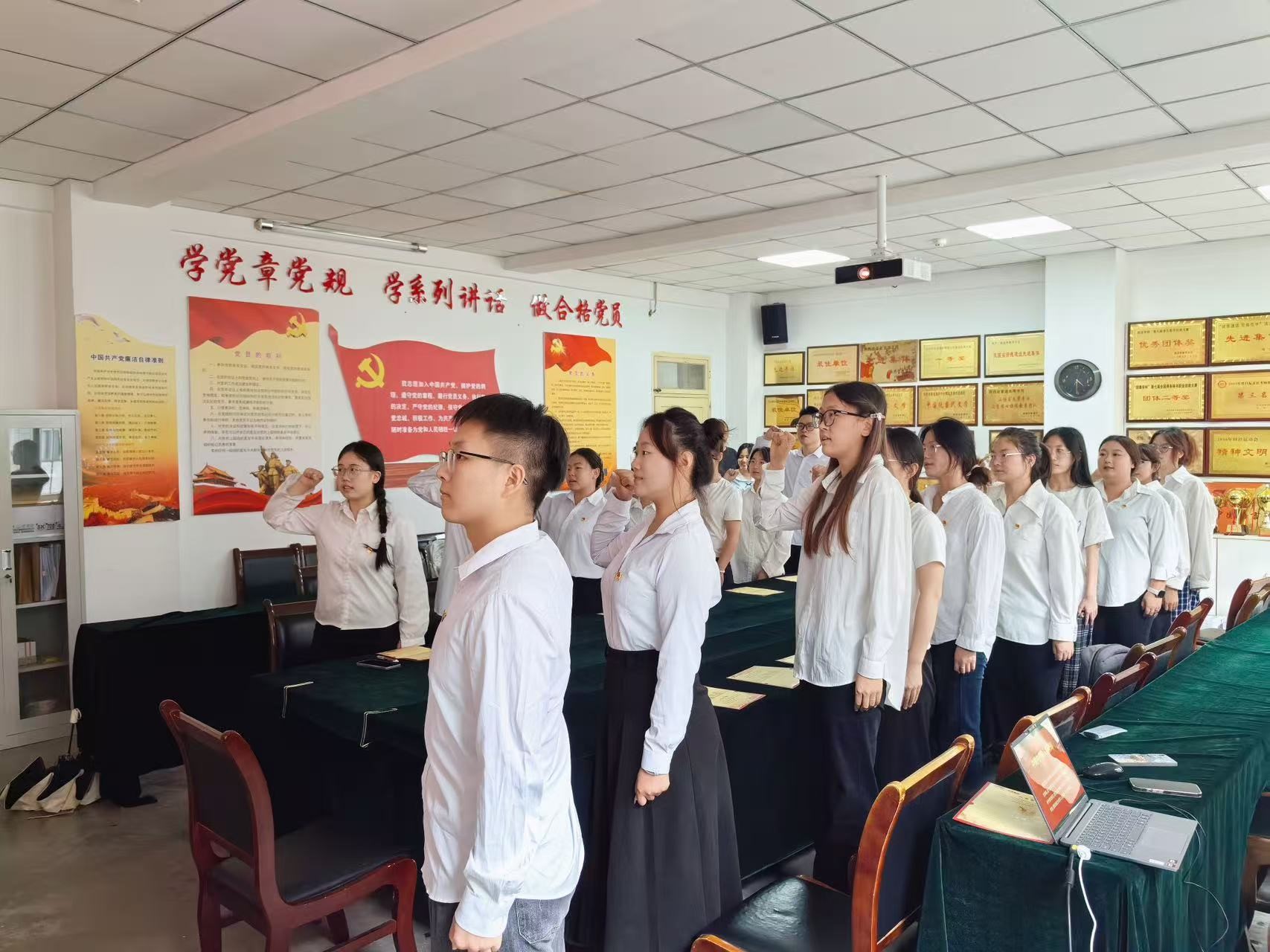 随后,在鲜红的党旗前,全体党员高举右拳,庄严宣誓,铿锵有力的誓言在活动现场久久回荡,表达了他们对党的忠诚和为共产主义事业奋斗终身的坚定决心。